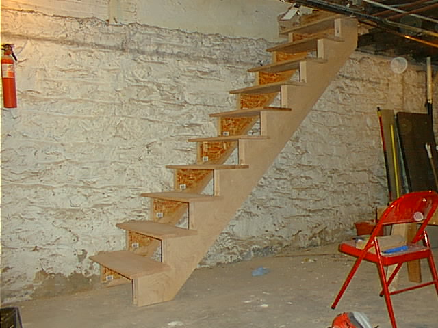 Evidently this bonehead’s inspection was as thorough as his report because the termites had dug a tunnel from the far foundation wall, across the ceiling through a 3″ floor joist, and down the stairs. It cost me $1500 to have a licensed, BBB-certified exterminator exterminate the house. There’s more to that story, but I’ll digress on that some other time. What matters is that I had to replace that staircase. I was very lucky it didn’t collapse on me.