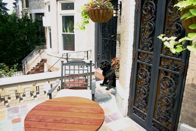 Anyway, finished. Except for that little mahogany box behind the chair. That’s the dedicated dog poop receptacle. And it’s looking a little weather-worn too. Maybe just a little sanding…
