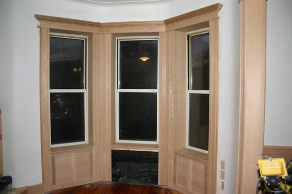 Anyway, the outside panels are already done and installed. They’ll get a bolection moulding treatment later when I learn what router bit set I need to cut these things. I’m just surprised that none of the router bit manufacturers sell such a kit, as they do for raised panels and other trim elements. I mean, Rockler has a four-bit set for making frikkin miniature train tracks! But not for bolection moulding, which is a mainstay in old house trimwork??