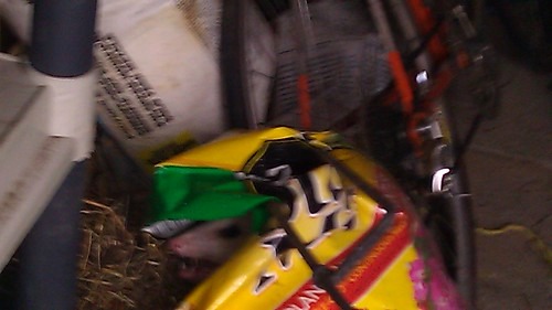 Not sure what to do here. On the one hand, I’m not going to do what one of my neighbors did and kill him. Any wild animal that manages to survive on the streets of Brooklyn has my profound respect. My concern with the nesting material however is that this is really Penelope Possum and that she’s about to bring more of these critters into the world. Whatever, I need to replace the missing brick in the side of the extension in the spring.
