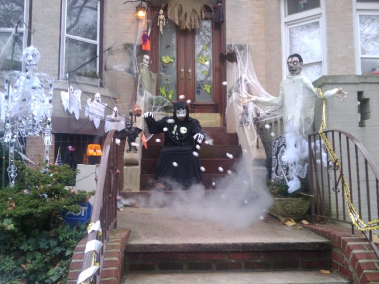 The neighborhood was a mob scene of power rangers and fairy princesses tonight. Our state senator had the brilliant idea of turning the park down the block into “Haunted Halloween” with a disco, a haunted walk, hay rides, a food court and kiddy amusements as a safer alternative to trick-or-treating. As a result, half the kids in Brooklyn were there. Then they assaulted my neighborhood for their sugar rush. Next year I want a government subsidy on my candy supply.