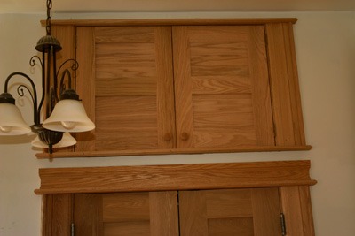 These doors were another scrounge job. It’s leftover lumber and red oak plywood from the wainscotting and earlier projects. I’m on a kick now to reduce my lumber scrap bin.