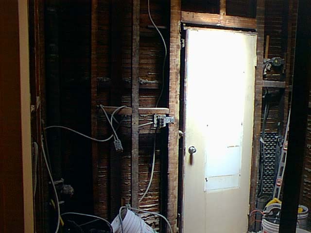 Day #3: The old wiring has been removed. The subpanel was installed and #6 BX cable pulled from the basement. A couple of ceiling can lights and sconces are in place.