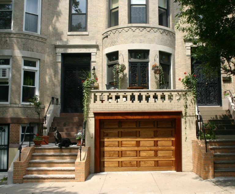 Here again is a shot of Brooklyn Row House today. Betsy’s and my lower concrete stairs were replaced in 2005 due to severe cracking. I also did a garage rehab because I hated the look of the old one. It’s maybe a little too slick and modern for the house now but I got carried away in my shop. Give it another 40 years and it’ll look original.