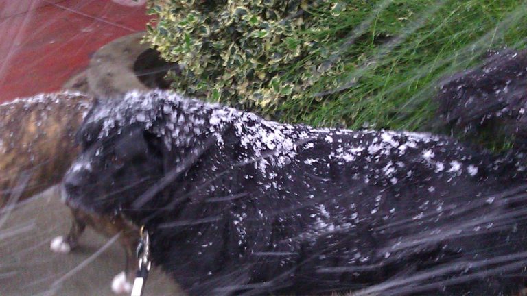 It’s nights like this that I wish I hadn’t housebroken my dogs so well. They’d sooner cut their own throats than mess in the house. Worse, I can’t even push them out the door to do their business in the back yard. They just sit by the back door looking miserable.