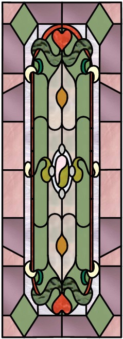Anyway, here it is, with my large cache of Nantucket and motorcycle teeshirts. Each stained glass panel is 11″x31″. And here’s what they’ll look like, as designed in GlassEye 2000.