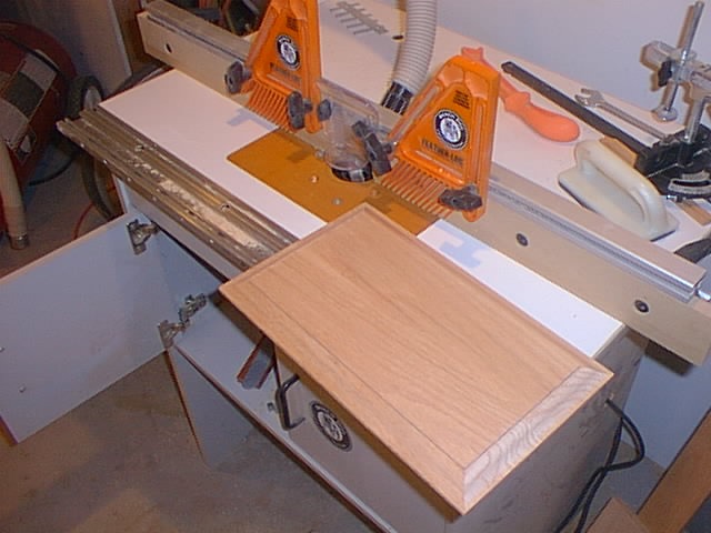 The panel cutter is the third bit in the exciting raised panel trilogy. There’s not much to say about it. Cut across the end grain first so the perpendicular cut will remove any tear-out. Also, this should be done with a variable speed router set to low speed. Panel cutters are wide bits and the torque at a router’s nominal speed can cause the carbide tips to fly off… not reassuring on a waist-level table tool and a bit spinning at 200mph.